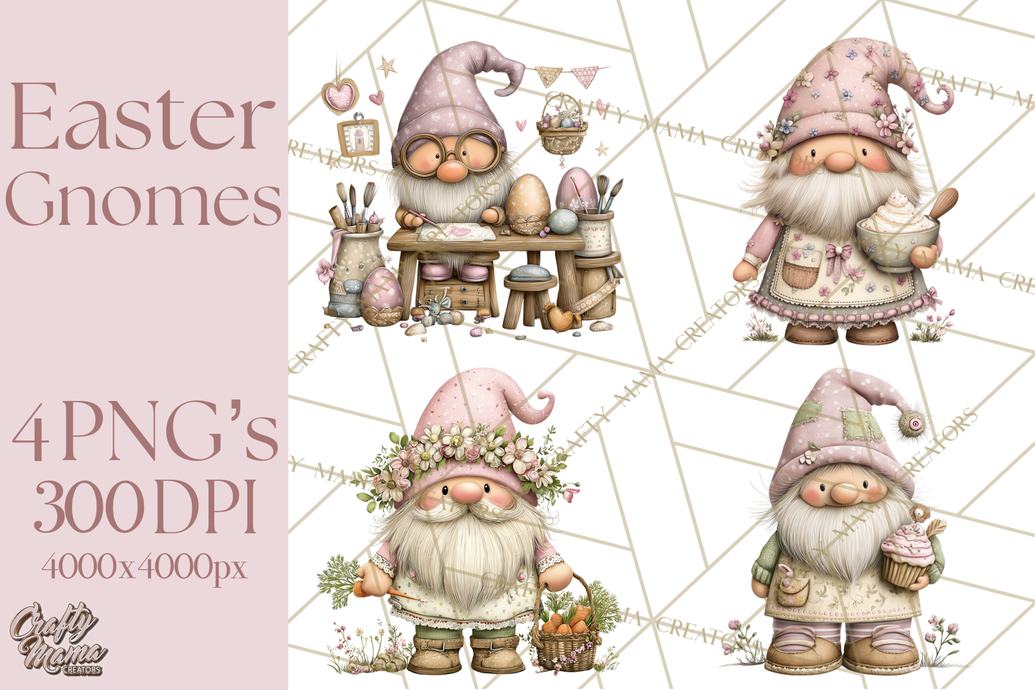 Easter Gnome Clipart, Cute Spring Gnomes PNG example image 1