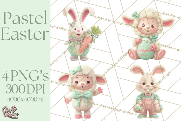 Celebrate Easter in soft pastel tones with this Whimsical Easter Characters clipart collection. Featuring full-body bunnies and spring animals in a fresh mint, pink, and coral palette, these adorable characters are perfect for printables, stickers, cards, and seasonal projects.