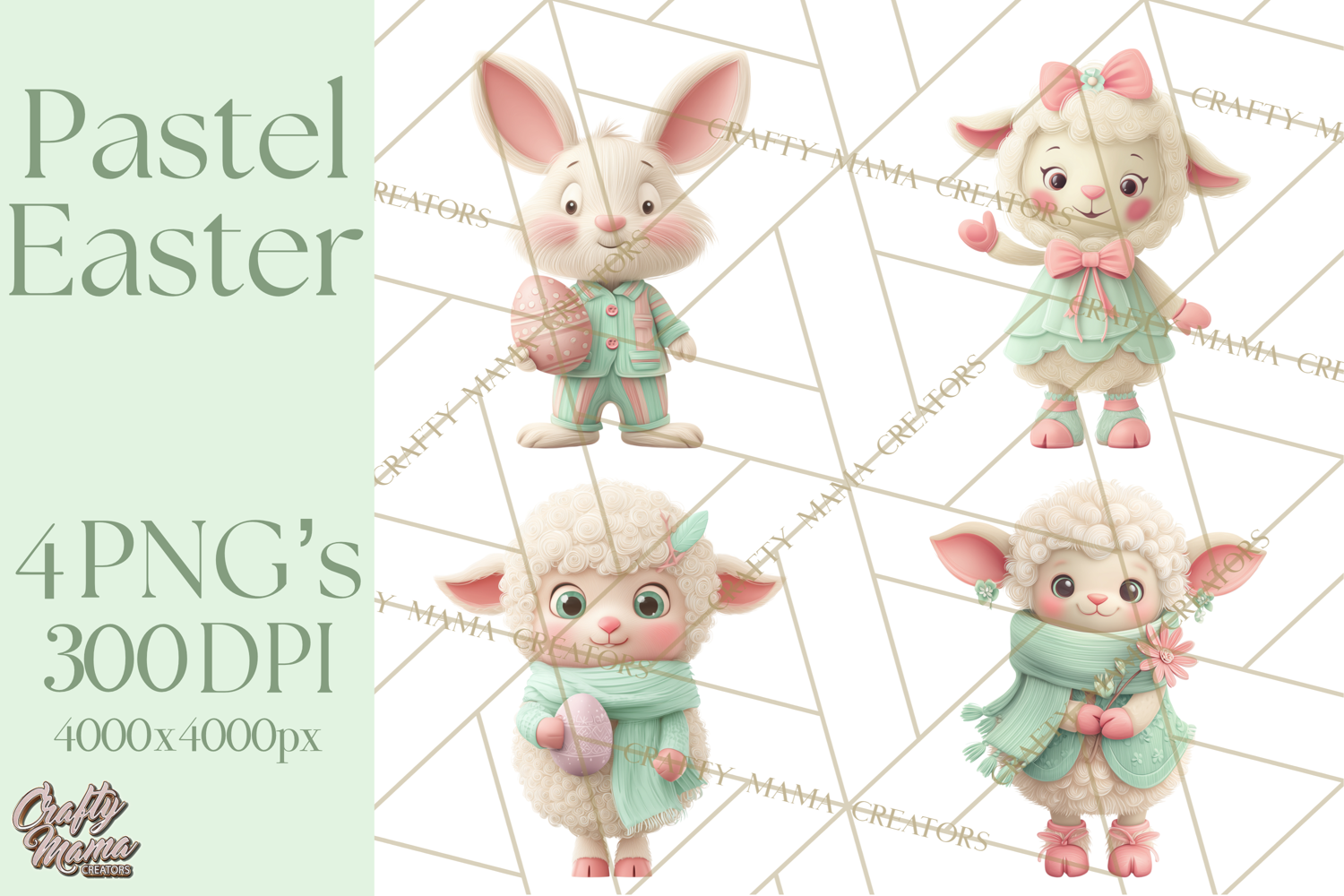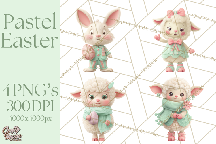 Celebrate Easter in soft pastel tones with this Whimsical Easter Characters clipart collection. Featuring full-body bunnies and spring animals in a fresh mint, pink, and coral palette, these adorable characters are perfect for printables, stickers, cards, and seasonal projects.