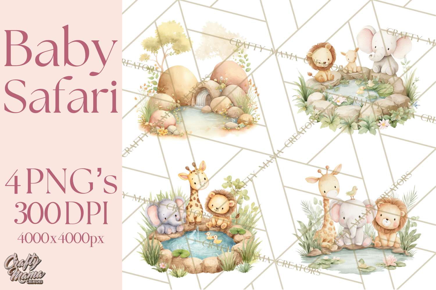Bring playful safari fun to your designs with this Safari Baby Animals Mini World Clipart Collection. Featuring soft watercolor textures, gentle pastel tones, and kawaii-style baby safari animals, this mini world is perfect for children’s projects, nursery decor, and whimsical spring-themed creations.