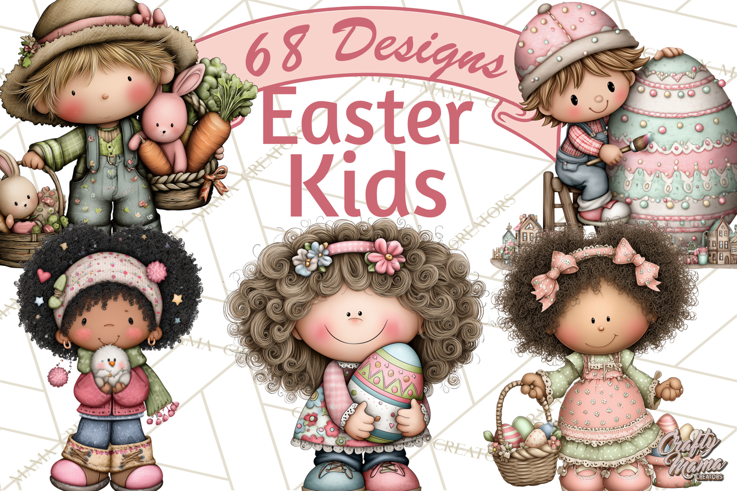 Bring the joy of Easter to your projects with adorable kids clipart and playful spring-themed props. This collection features cheerful little girls and boys engaging in festive activities like carrying baskets, painting eggs, chasing chicks, exploring gardens, and holding colorful flowers. Perfect for digital scrapbooking, Easter cards, invitations, kids’ crafts, educational projects, and whimsical spring designs, these high-quality digital illustrations capture a charming, playful, and kid-friendly Easter mini-world.