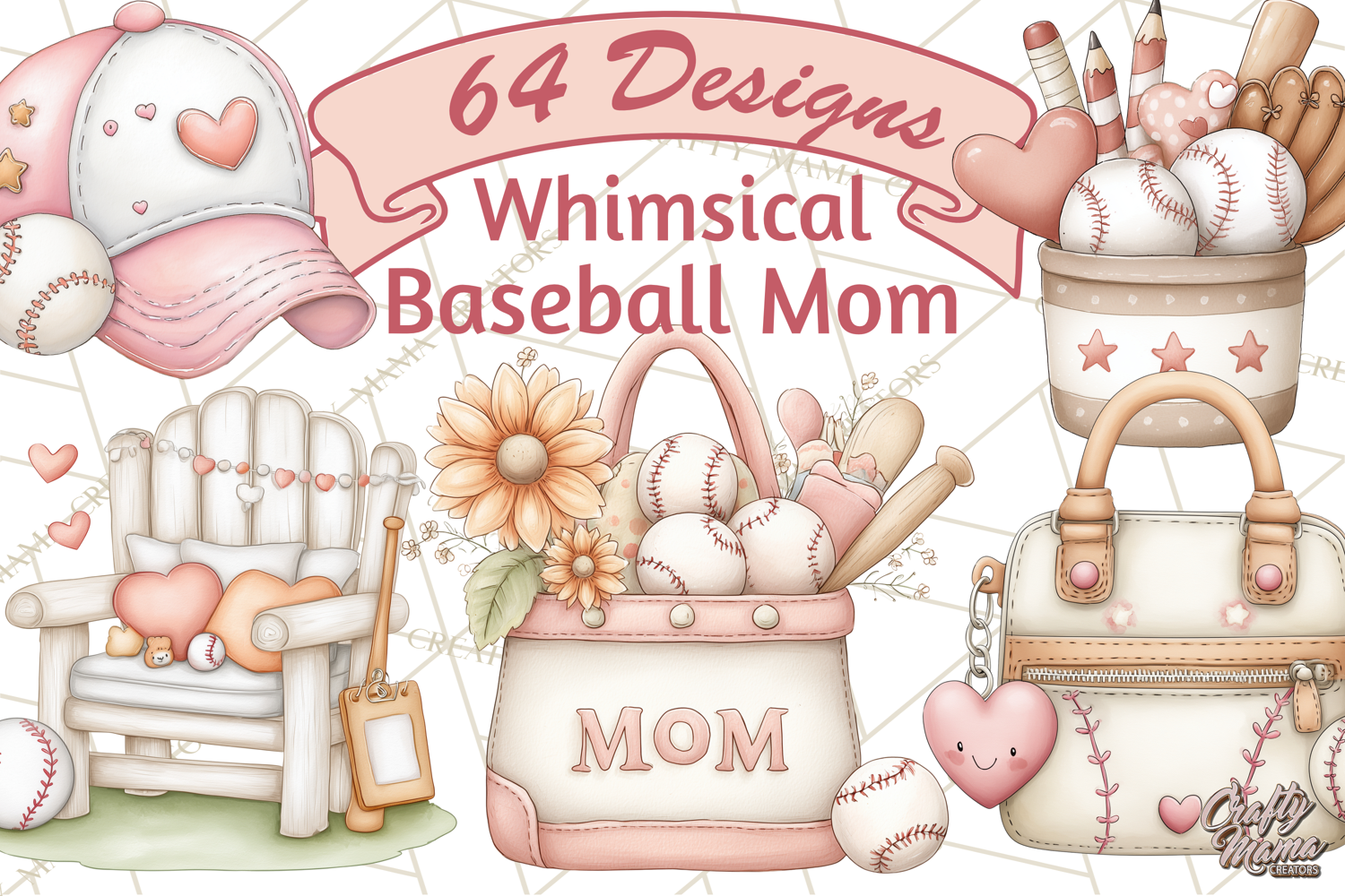 Similar Design Products to Baseball Mom Clipart PNG, Whimsical Graphics for Sports Moms