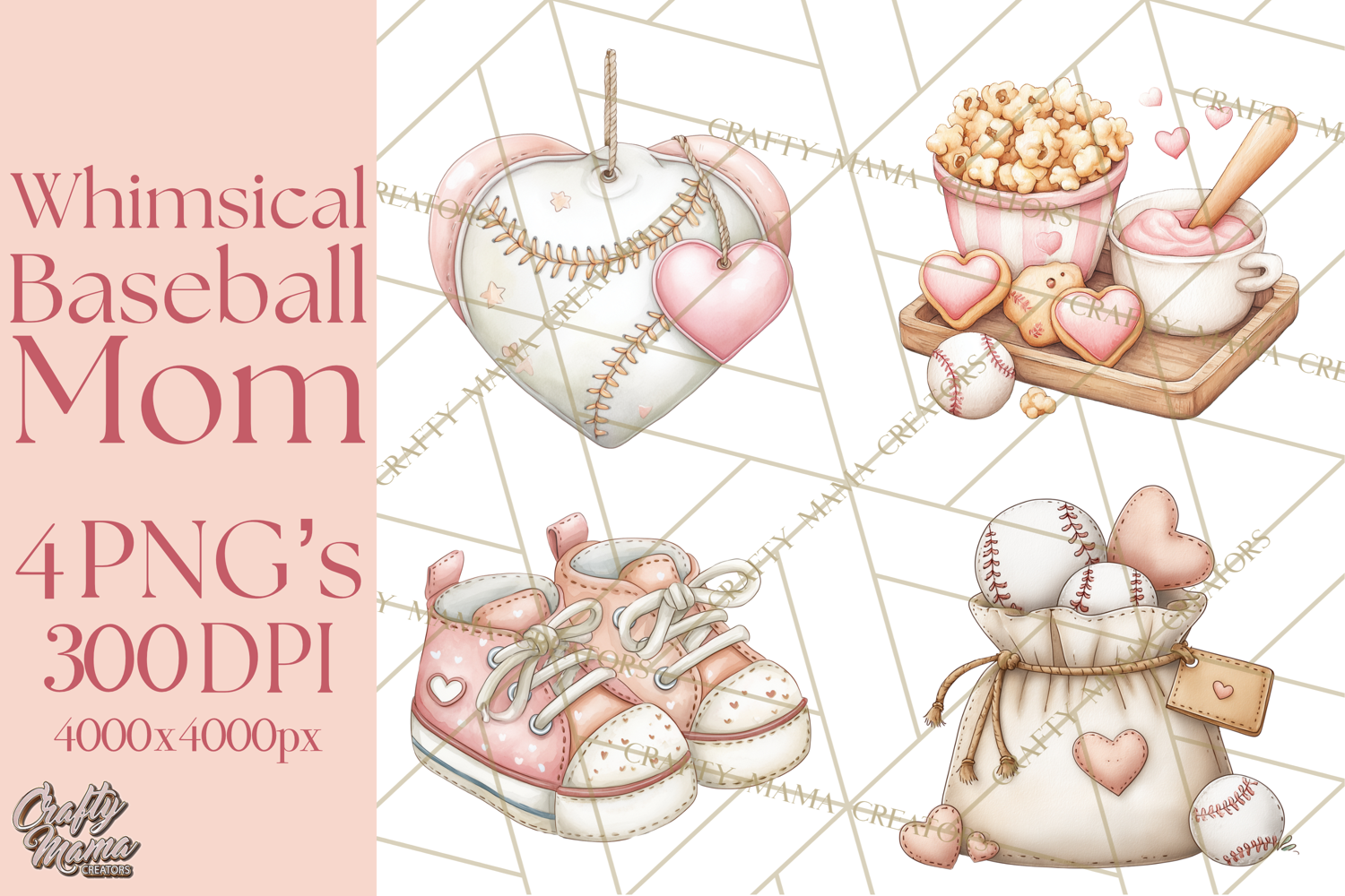 Similar Design Products to Baseball Mom Clipart PNG, Whimsical Graphics for Sports Moms