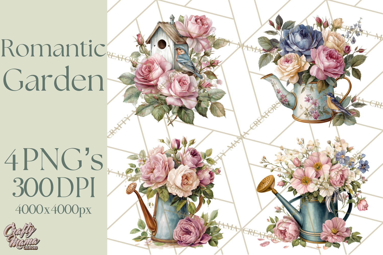 Bring soft, romantic charm to your designs with this watercolor clipart collection featuring whimsical garden props. From delicate floral benches and pastel birdcages to lanterns, watering cans, and stacked flower pots, these illustrations are perfect for creating wedding stationery, scrapbooking, planners, wall art, invitations, and printable projects.