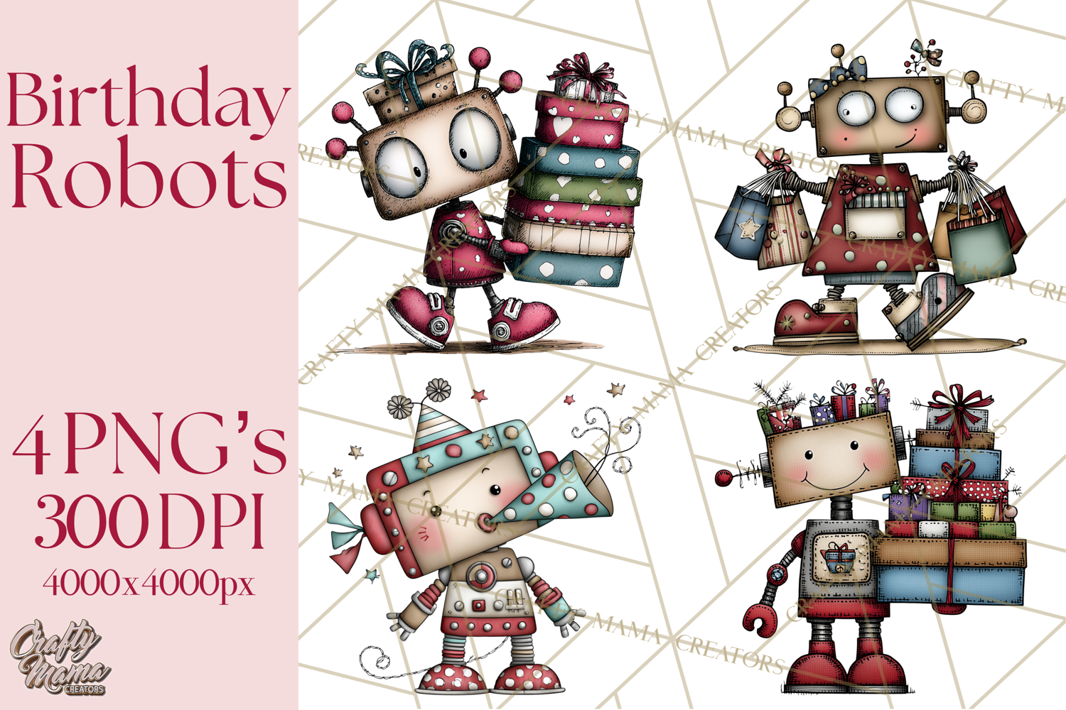 Bring a fun and playful vibe to your projects with adorable birthday robot clipart and cute party-themed props. This collection features cheerful wooden and pastel toy robots celebrating with cupcakes, balloons, presents, party hats, confetti, and colorful decorations. Perfect for birthday cards, invitations, party printables, digital scrapbooking, educational projects, and whimsical seasonal designs, these high-quality digital illustrations capture the joy and excitement of a robot birthday celebration in a charming, kid-friendly style.