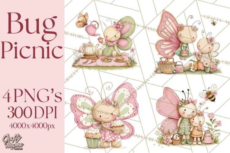 Create cheerful spring and summer designs with this adorable Insect Picnic Mini‑World! Perfect for crafters, teachers, and designers alike — use these fun bug friends and picnic scenes for invitations, classroom projects, party décor, printable crafts, digital scrapbooking, and more.