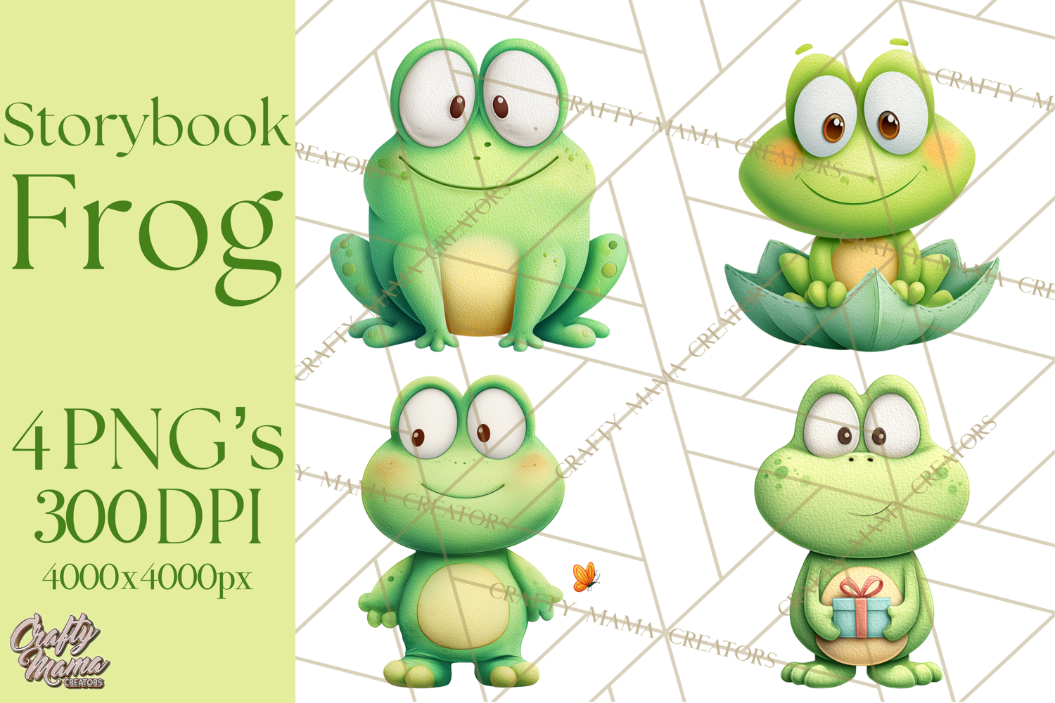 Frog Storybook Clipart, Cute Cartoon Frog Illustrations Png example image 1
