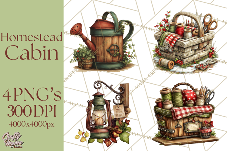 This Rustic Homestead Living Clipart features detailed illustrations inspired by traditional country life, simple living, and rural homestead traditions.