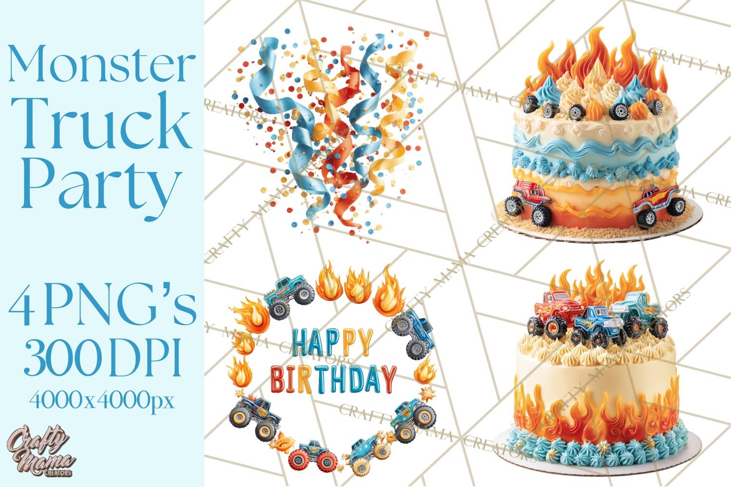 Birthday Party Printable Clipart Png Monster Truck Birthday Party Clipart Png Racing Party Decorations Png Kids Monster Truck Birthday Clipart Png Vehicle Celebration Printable Png Tires And Flames Party Decorations Png Red Blue Monster Truck Clipart Png Kids Racing Party Decor Png Monster Truck Birthday Elements Png Racing Themed Party Art Png