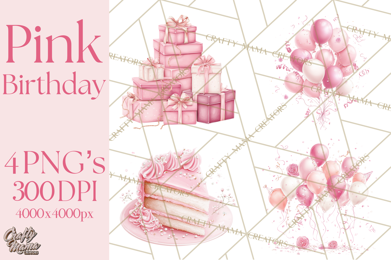 Similar Design Products to Pink Birthday Clipart, Vibrant Party Decorations PNG