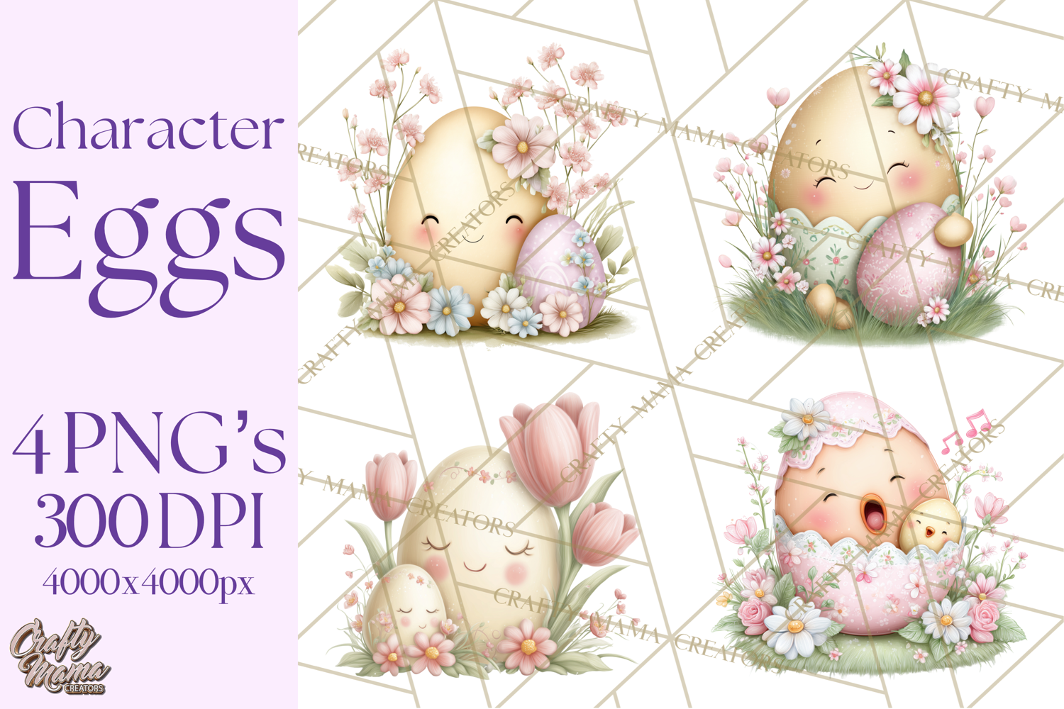 Bring playful charm to your Easter projects with this adorable Easter Egg Character Friends clipart collection! Each pastel egg features a sweet face and tiny arms, holding eggs, painting, hugging, or peeking, surrounded by soft spring flowers. Perfect for nursery art, Easter decor, and baby-themed creations.