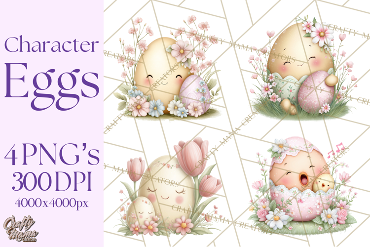 Similar Design Products to Easter Egg Clipart PNG, Cute Baby Easter Eggs with Faces