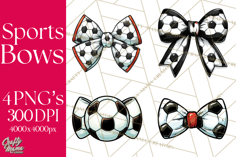 This sports hair bow clipart features bow designs inspired by soccer. Each bow showcases sporty patterns and clean details, making them perfect for athletic-themed crafts and custom designs.
