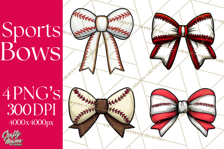 This sports hair bow clipart features bow designs inspired by baseball. Each bow showcases sporty patterns and clean details, making them perfect for athletic-themed crafts and custom designs.