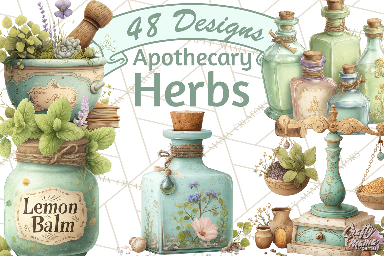 Similar Design Products to Vintage Herbal Apothecary Clipart, Spring Botanical Png
