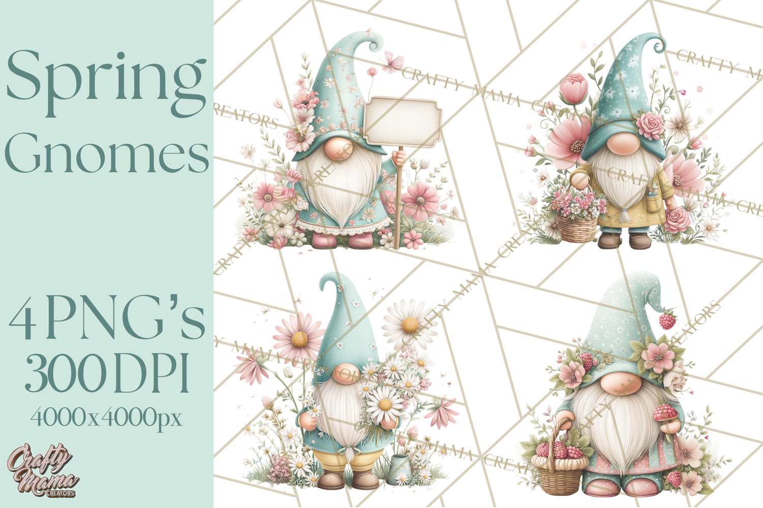 This Spring Garden Gnome clipart collection features adorable garden gnomes in colorful outfits with floral and garden props. Perfect for spring decor, garden party invitations, nursery designs, and kids’ crafting projects. These illustrations are created in a soft watercolor style with detailed textures and clean edges for easy layering.
