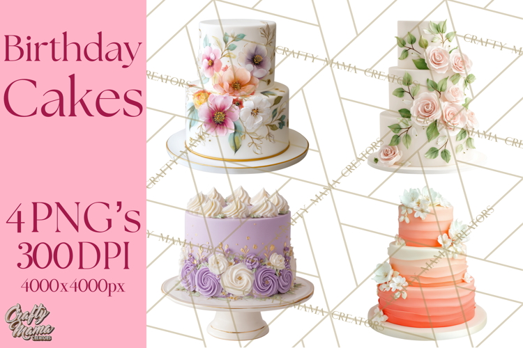 This photorealistic birthday cake clipart collection includes 4 high-resolution PNGs. You’ll find a variety of styles like single layer, tiered, drip, naked, and fondant cakes—plus some with sprinkles for extra charm. Perfect for party invitations, printable decor, social media posts, and digital design projects.
