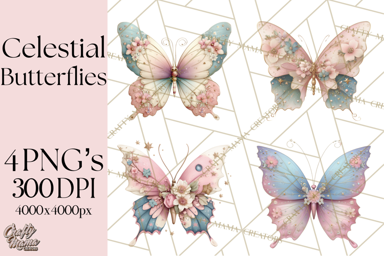 Bring dreamy celestial magic to your creative projects with this Celestial Butterfly PNG collection, inspired by pastel gradients, star‑dusted wings, moonlit motifs, and soft floral accents. These enchanting elements are perfect for creators who love whimsical, magical artwork with a gentle spring glow.