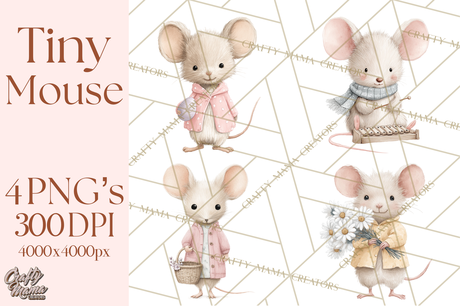 Adorable Tiny Mouse Clipart, Watercolor Mice PNG