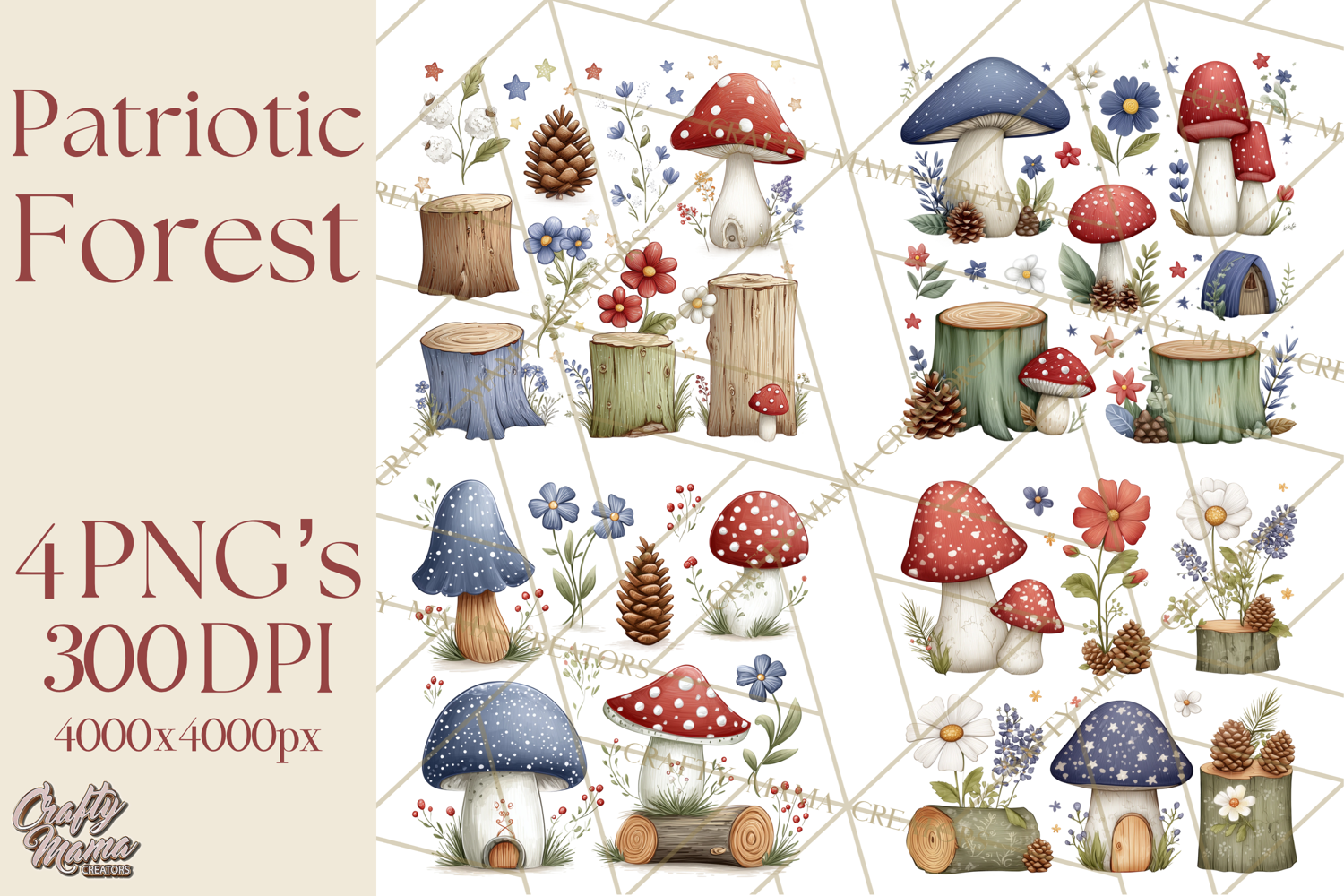 Bring a cozy, patriotic woodland charm to your projects with this Patriotic Woodland Mini World clipart collection. Perfect for Americana crafts, nursery décor, and July 4th themed projects.