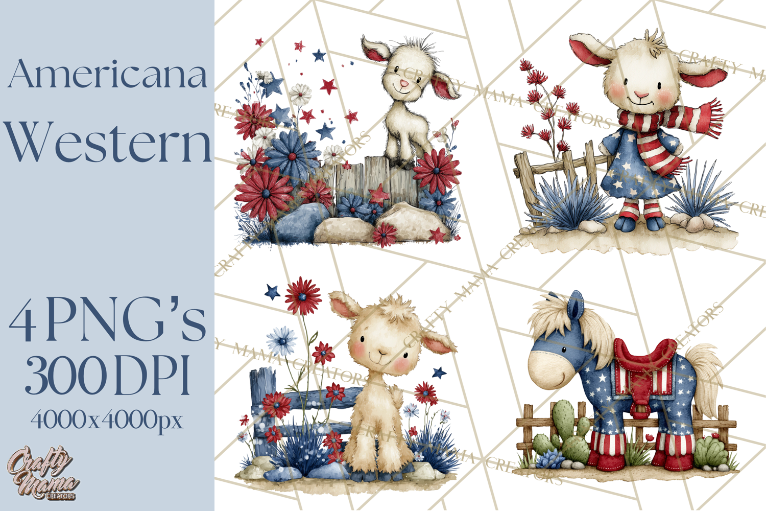 Americana Clipart Desert Animal Clipart Red White Blue Animals Patriotic Western Clipart Whimsical Western Animals Ranch Animals Png July 4th Western Png Western Props Clipart Cowboy Animals Clipart Western Animal Png