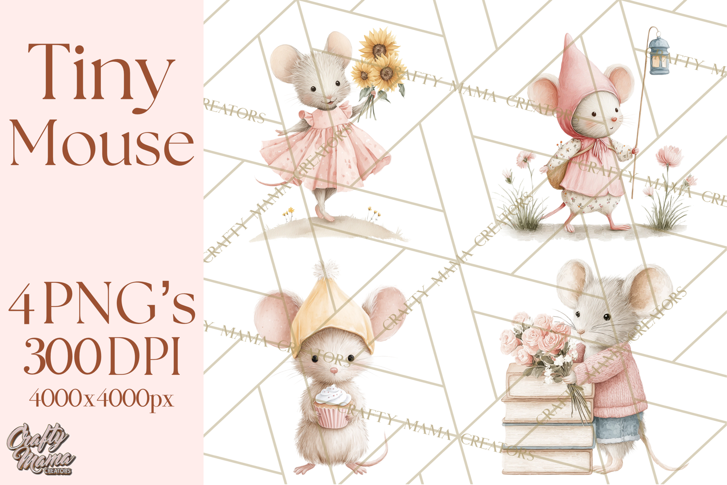 Adorable Tiny Mouse Clipart, Watercolor Mice PNG