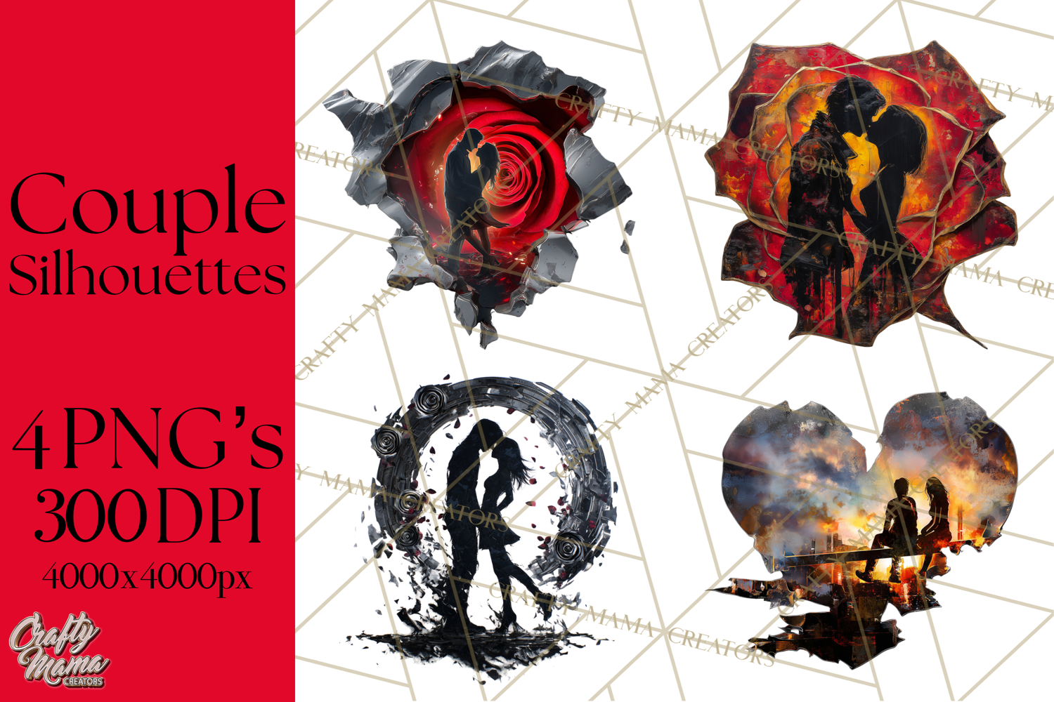 Similar Design Products to Romantic Couple Silhouettes, Rose Cutout PNG, Surreal Love