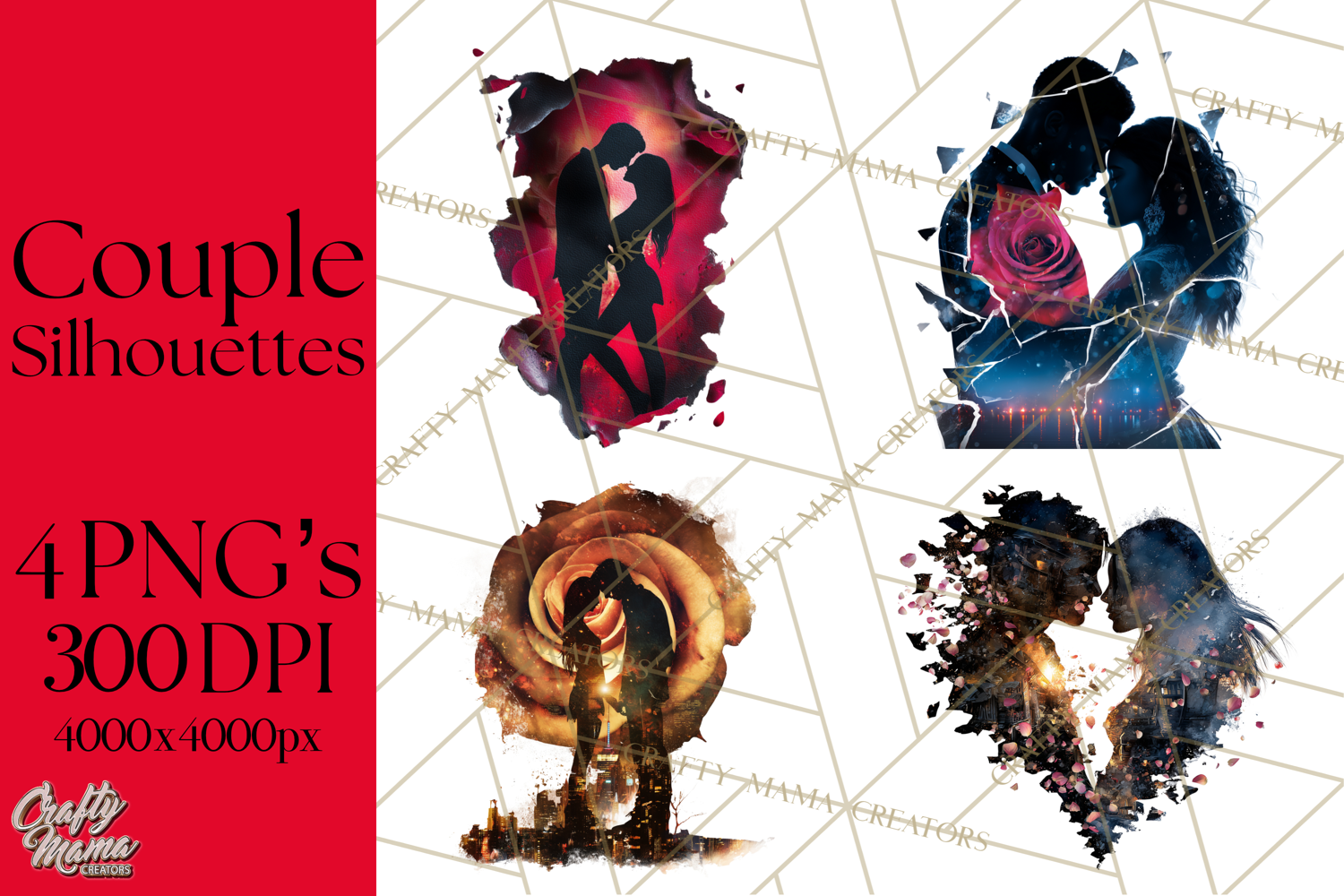 Similar Design Products to Romantic Couple Silhouettes, Rose Cutout PNG, Surreal Love