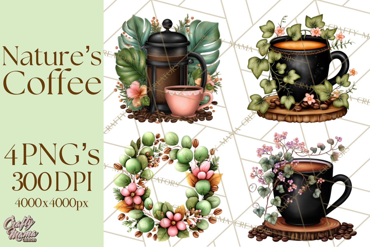 Create cozy café inspired designs with this coffee botanical watercolor clipart.