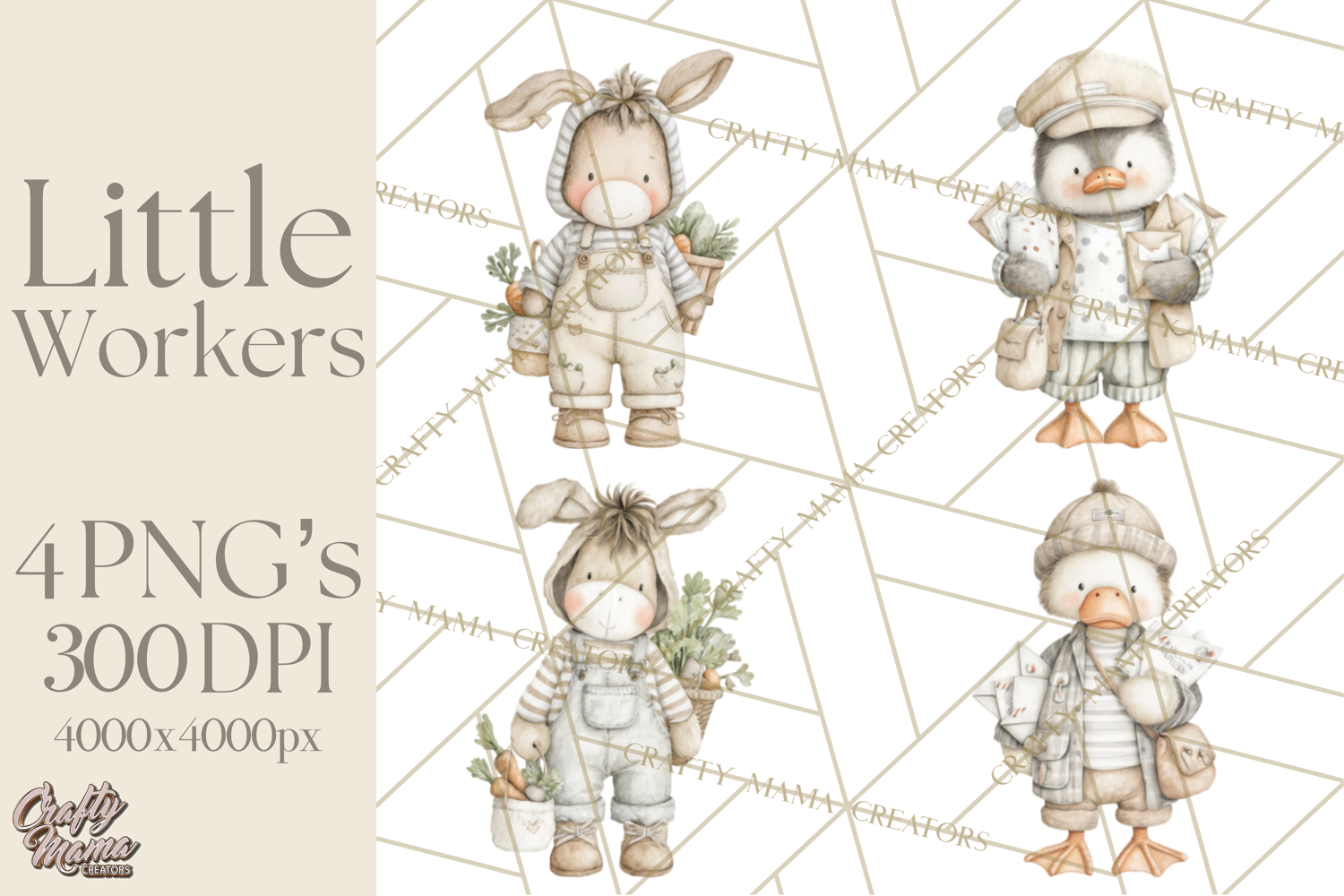 Bring adorable career characters to your creative projects with these plush occupation animals. Each design features a soft stuffed toy style animal dressed as a different profession such as firefighter, nurse, doctor, teacher, pilot, chef, astronaut, police officer, farmer, and more.