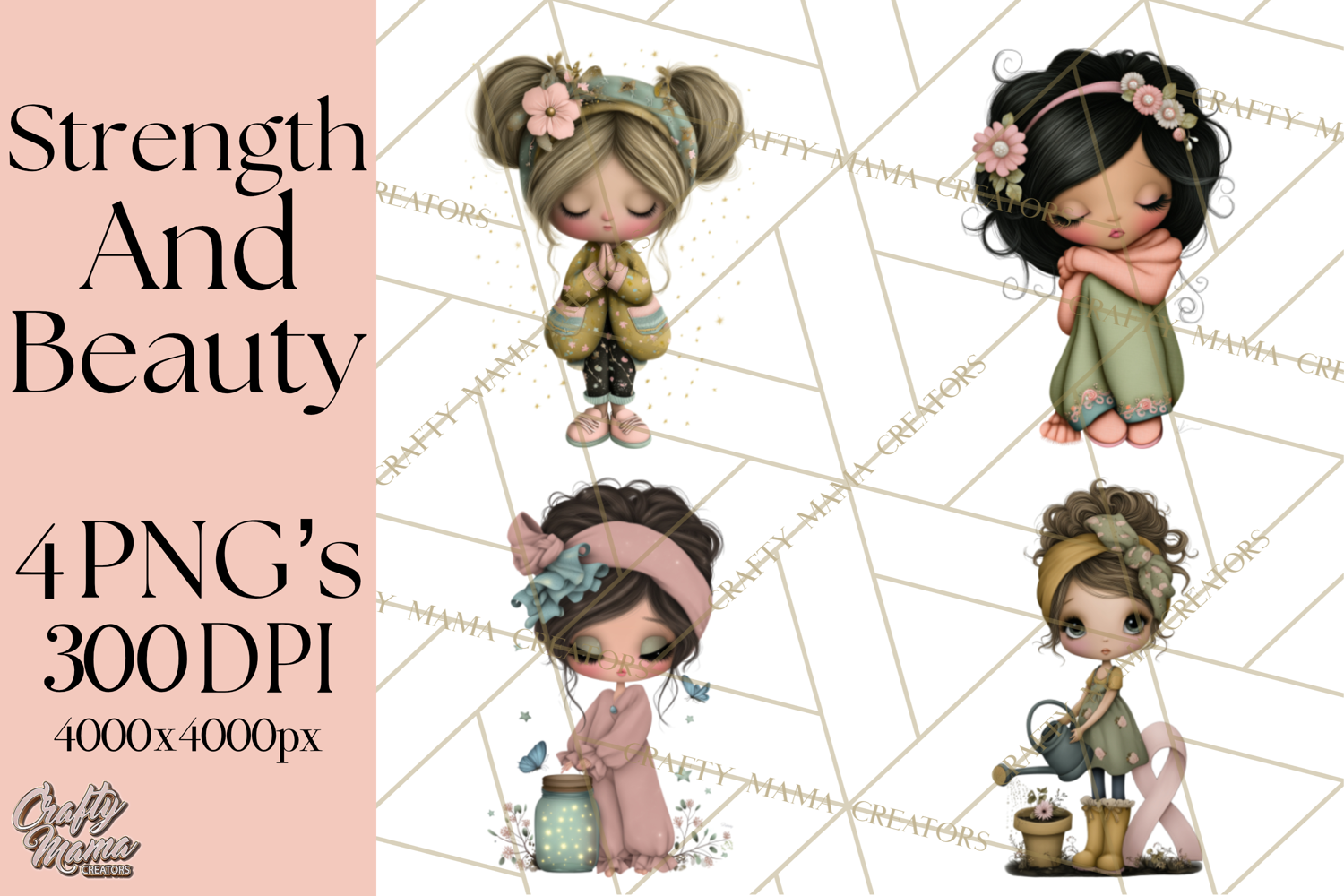 Breast Cancer Warrior Girls Clipart, Strength Beauty example image 1