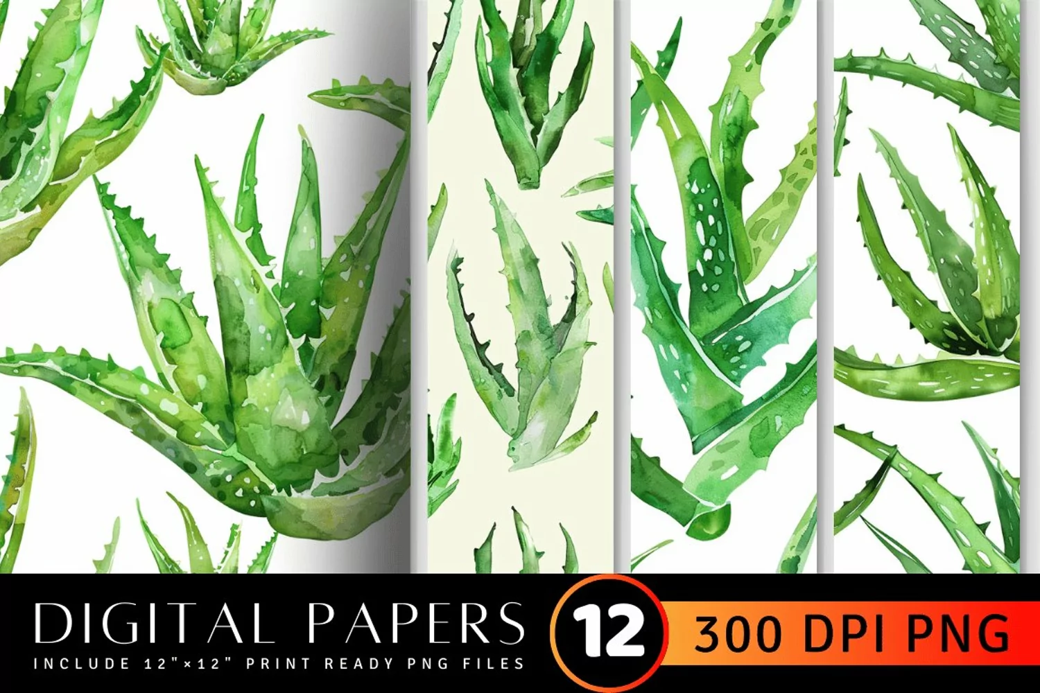 Aloe Vera Watercolor Digital Paper Backgrounds