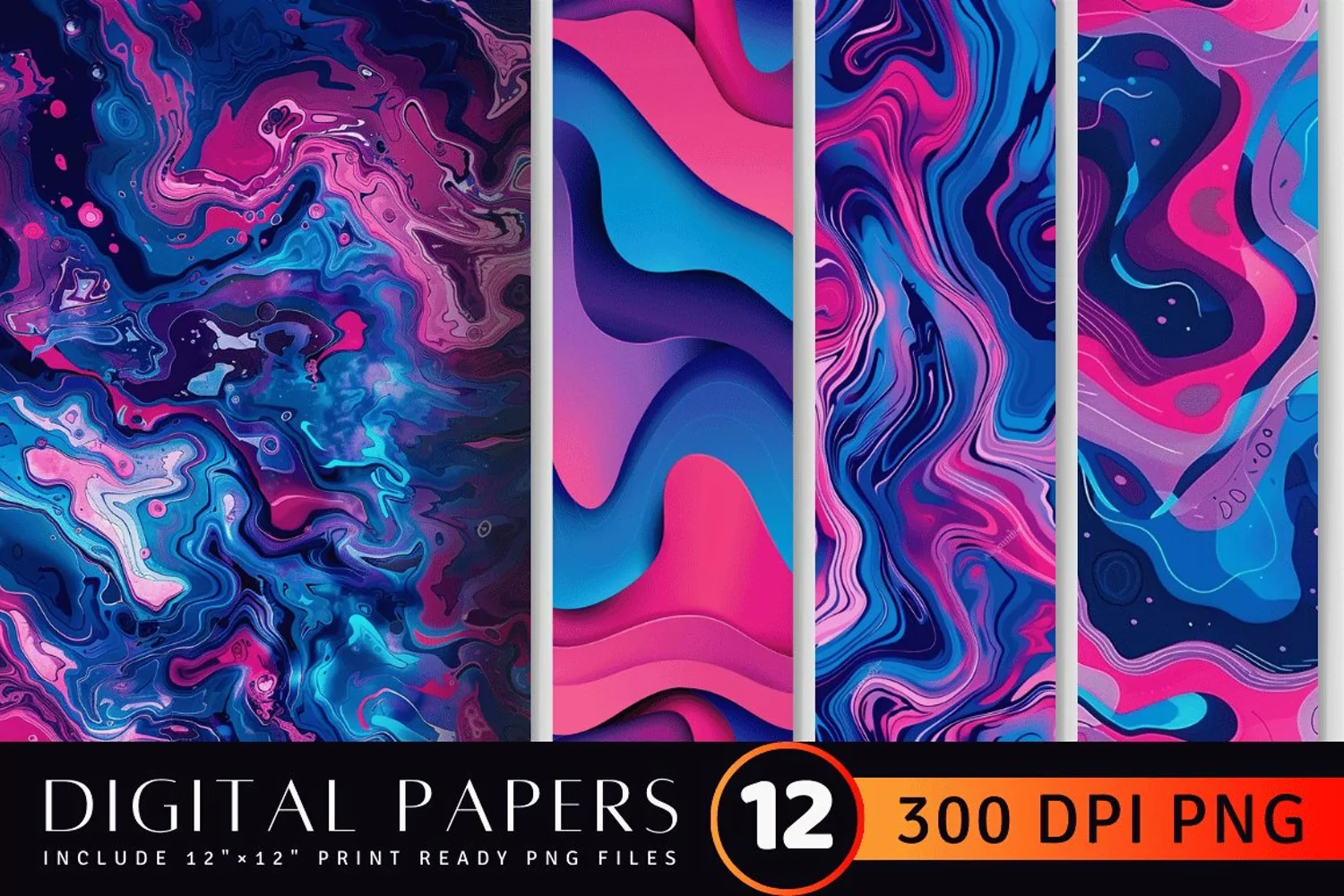 Magenta and Blue Abstract Art Digital Paper Backgrounds