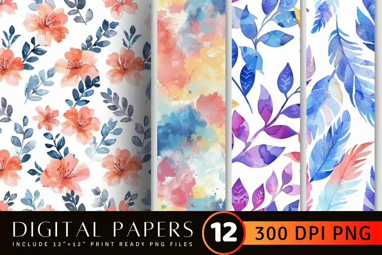 Watercolor leaf & flowers Digital Paper Backgrounds