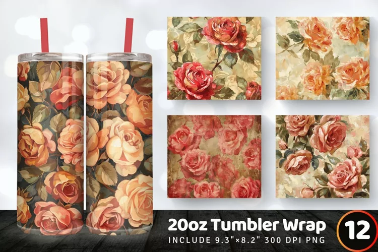 Vintage Oil Paint Roses Tumbler Wrap, 20oz Skinny Tumbler Wraps