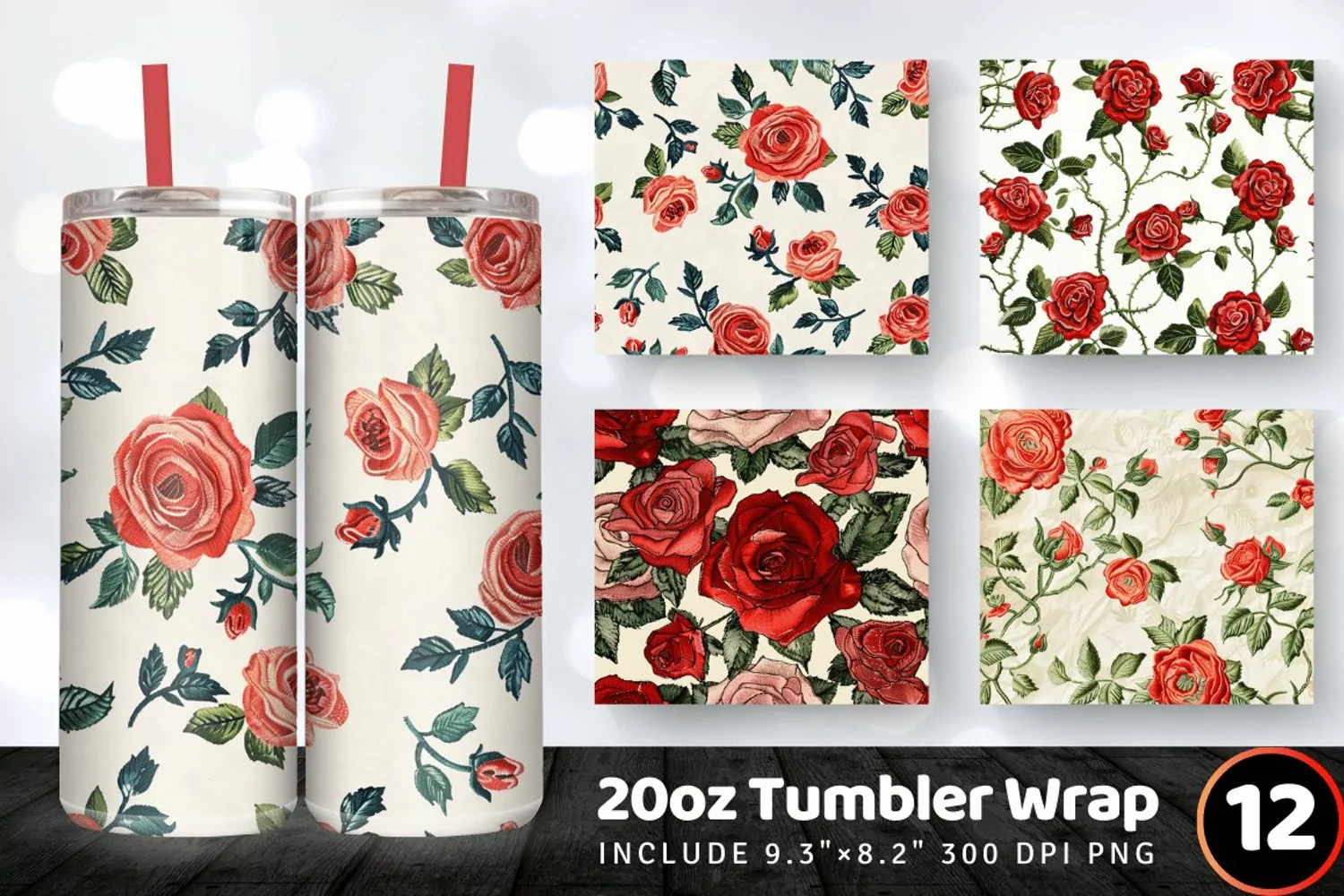 Roses Embroidery Flowers Tumbler Wrap, 20oz Skinny Tumbler Wraps