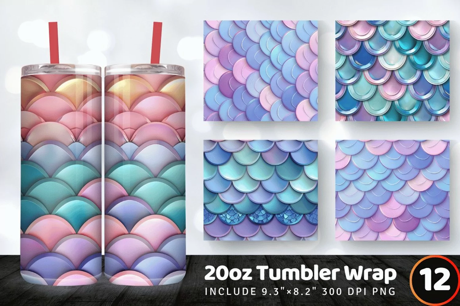 3D Mermaid Scales Tumbler Wrap, 20oz Skinny Tumbler Wraps