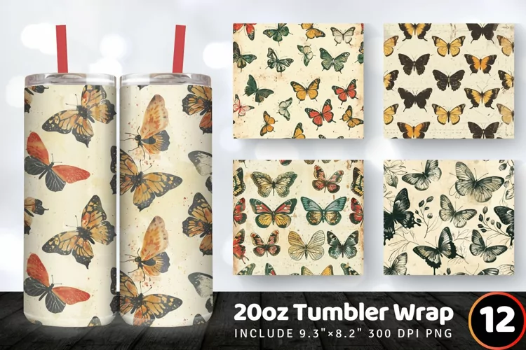 Vintage Butterfly Tumbler Wrap, 20oz Skinny Tumbler Wraps