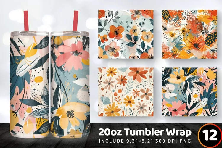 Abstract Boho Flowers Tumbler Wrap, 20oz Skinny Tumbler Wraps
