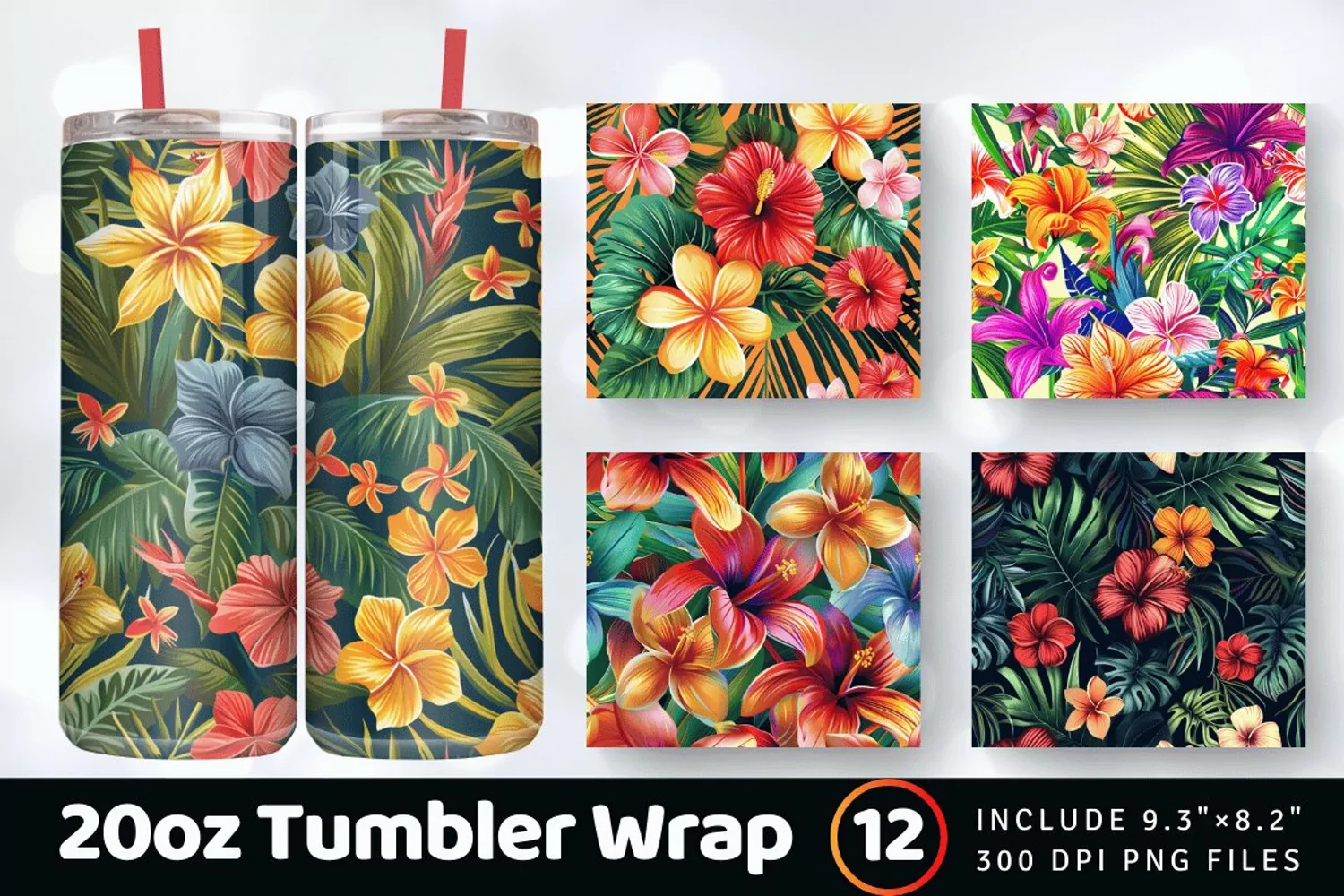 Tropical Paradise Flower Tumbler Wrap, 20oz Skinny Tumbler Wraps