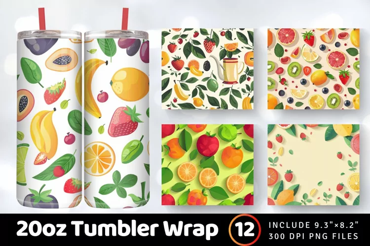 Gardening Fresh Fruits Tumbler Wrap, 20oz Skinny Tumbler Wraps