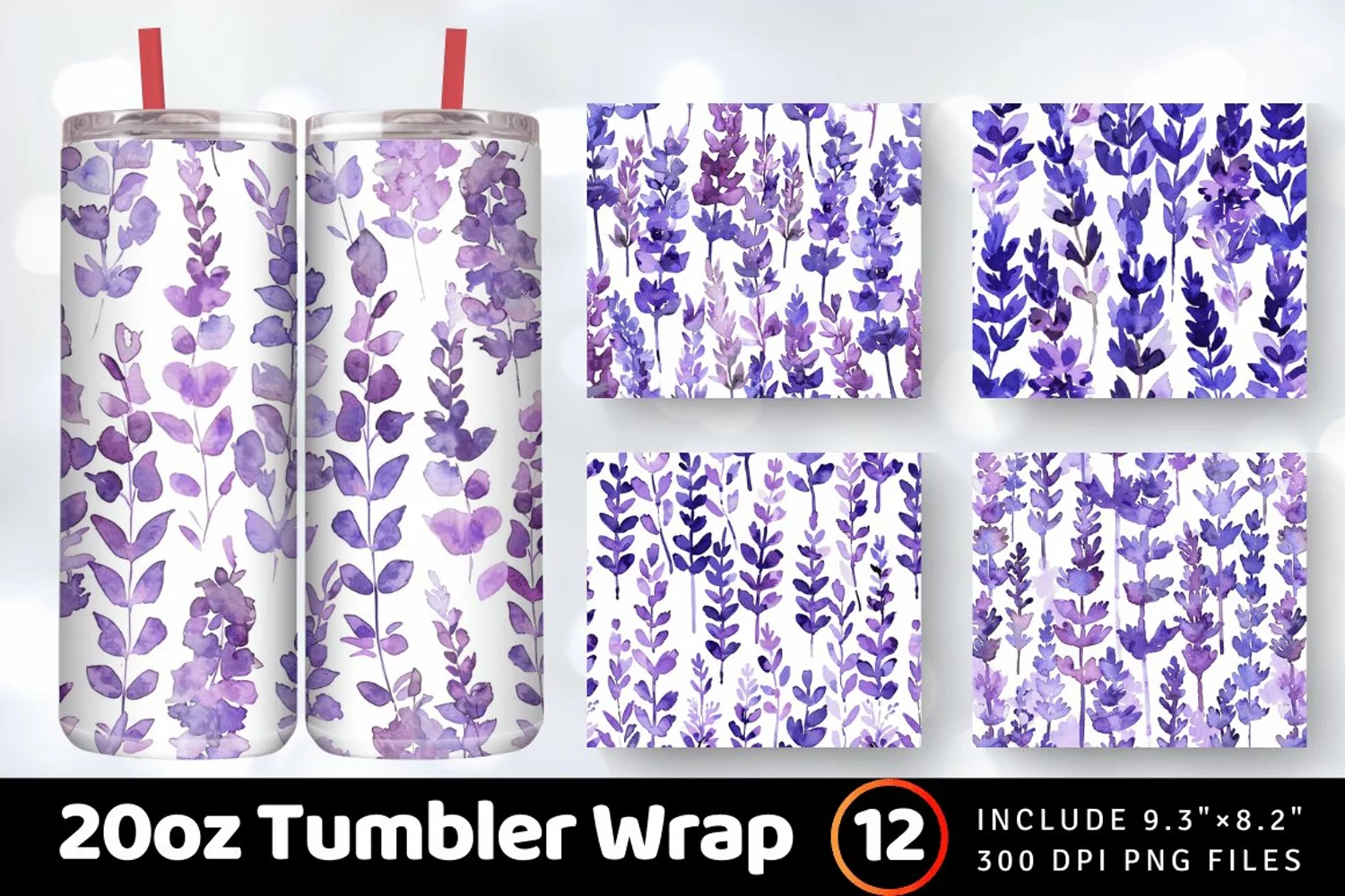Watercolor Purple Lavender Floral Tumbler Wrap, 20oz Skinny Tumbler Wraps