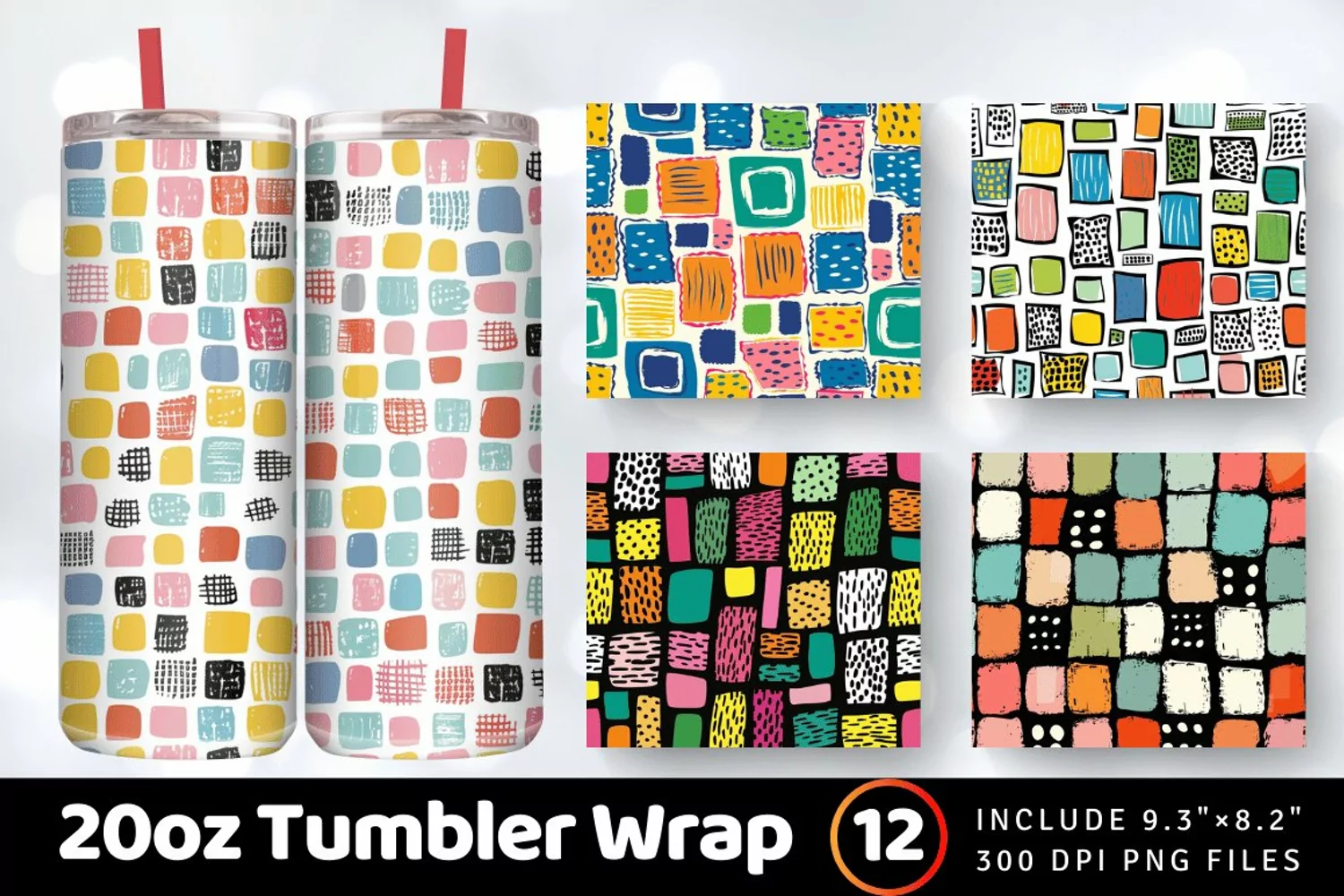 Doodle Polka Dots Rectangles Tumbler Wrap, 20oz Skinny Tumbler Wraps
