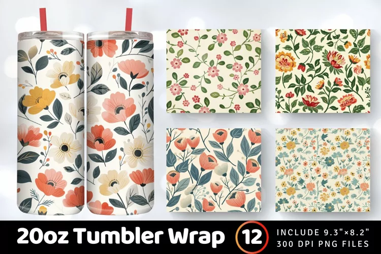 Mothers Day Retro Floral Tumbler Wrap, 20oz Skinny Tumbler Wraps