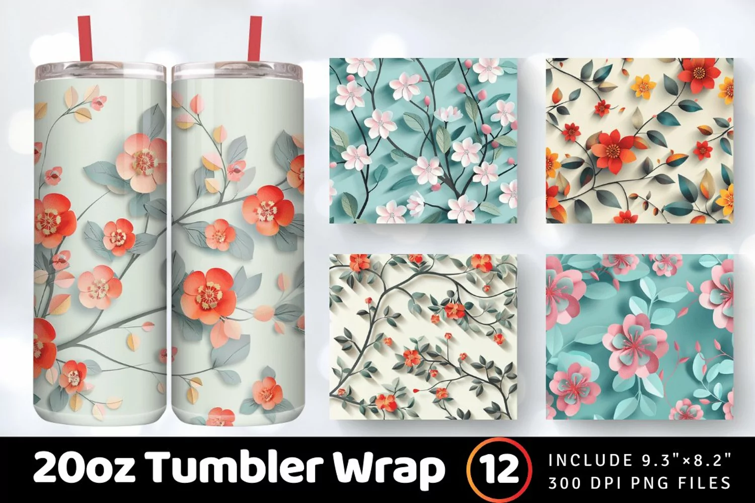 Flowers Branch Leaves Tumbler Wrap, 20oz Skinny Tumbler Wraps