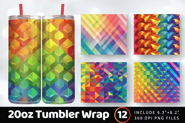 Geometric shape Rainbow Tumbler Wrap, 20oz Skinny Tumbler Wraps