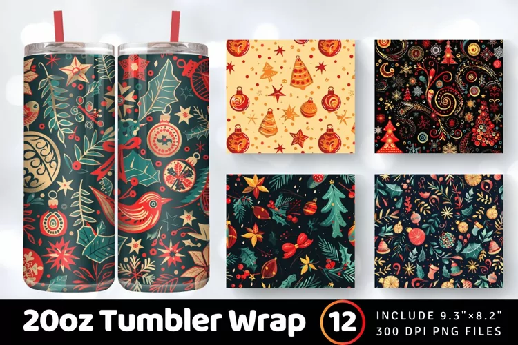 Festive Joyful Merry Christmas Tumbler Wrap, 20oz Skinny Tumbler Wraps
