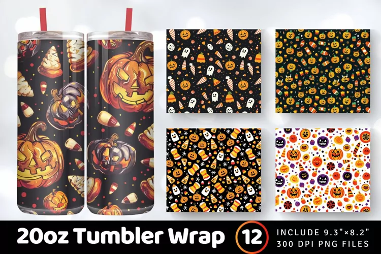Halloween Trick or Treat Tumbler Wrap, 20oz Skinny Tumbler Wraps