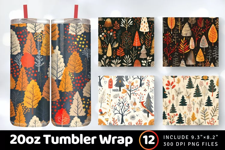 Autumn Forest Christmas Tumbler Wrap, 20oz Skinny Tumbler Wraps