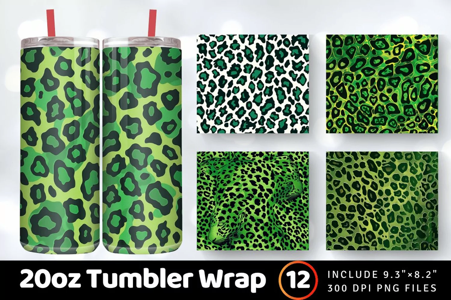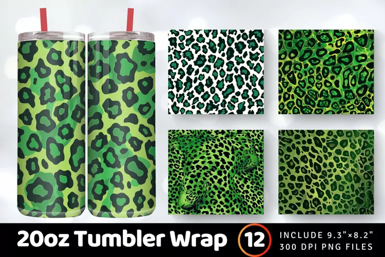 Green Leopard Skin Christmas Tumbler Wrap, 20oz Skinny Tumbler Wraps